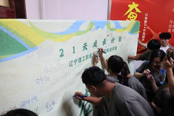 从签名墙前的郑重留名,到承载着分组意义的彩色手环,细节之处满是专属仪式感,让新生们对即将到来的21天充满期待。
