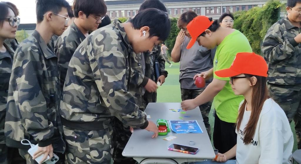 暮色渐浓,主楼前的抽奖转盘前排起长龙。新生们手持集满印章的卡片,在“幸运大转盘”前抽取定制文创、生活用品等奖品,欢声笑语与掌声此起彼伏。