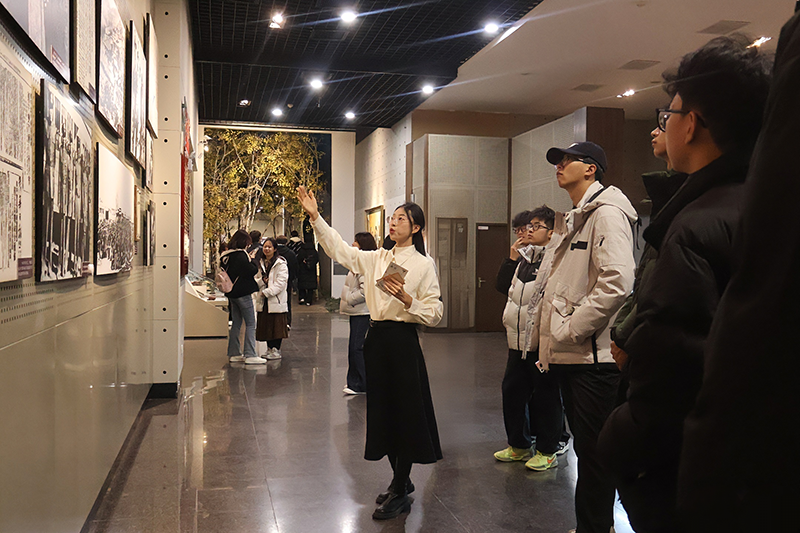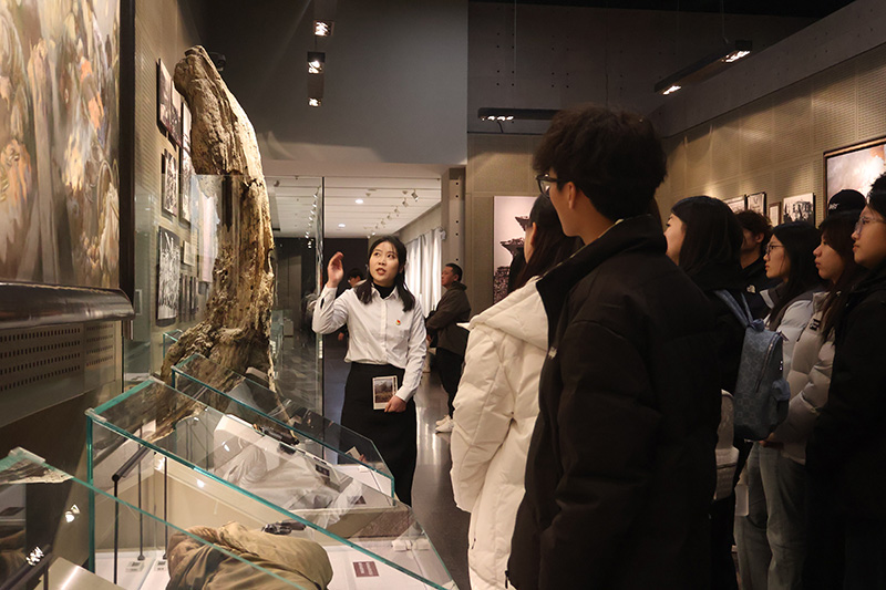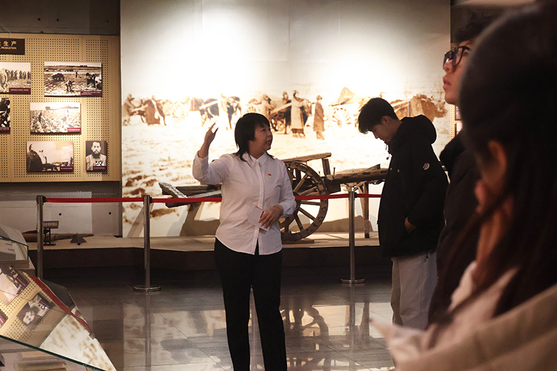 活动伊始,在马克思主义学院10位专任教师的带领和馆内讲解员的配合下,同学们依次参观了辽沈战役纪念馆序厅、战史馆、支前馆、英烈馆和全景画馆等核心展区。在现场教学过程中,教师们创新采用“边走边讲、定点深讲、集中研讨”的多元互动方式,将教材中的理论知识与鲜活的历史场景有机衔接,在真实的历史情境中讲授理论、诠释精神,使抽象的思政内容具象化、生动化,有效实现了历史叙事与思想引领的深度融合。