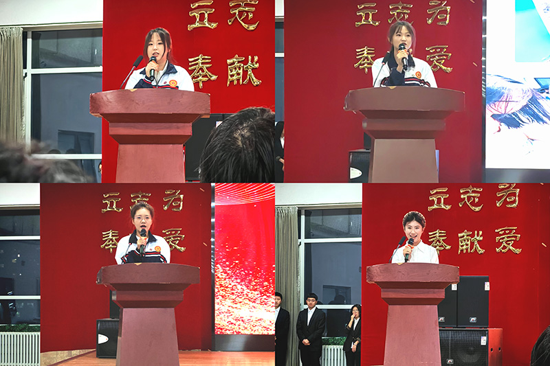 2024级护理八班于玉洁同学代表全体同学发出迎评促建倡议,她铿锵有力的发言传递出同学们以主人翁姿态助力学校发展的坚定决心。优秀学生代表、2024级护理二班王小雨同学结合自身获得省政府奖学金、校德恒一等奖学金的成长经历,分享了求知路上的奋斗感悟与学习方法,为同学们提供了实用的借鉴。新生代表、2025级酒店管理与数字化运营一班李欣雨同学则表达了对学风建设的深刻理解与践行决心,展现了新生一代的青春朝气与奋进姿态。