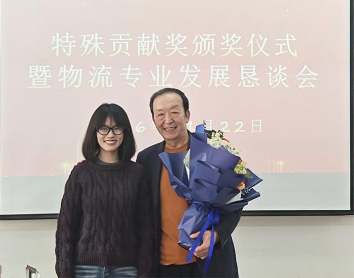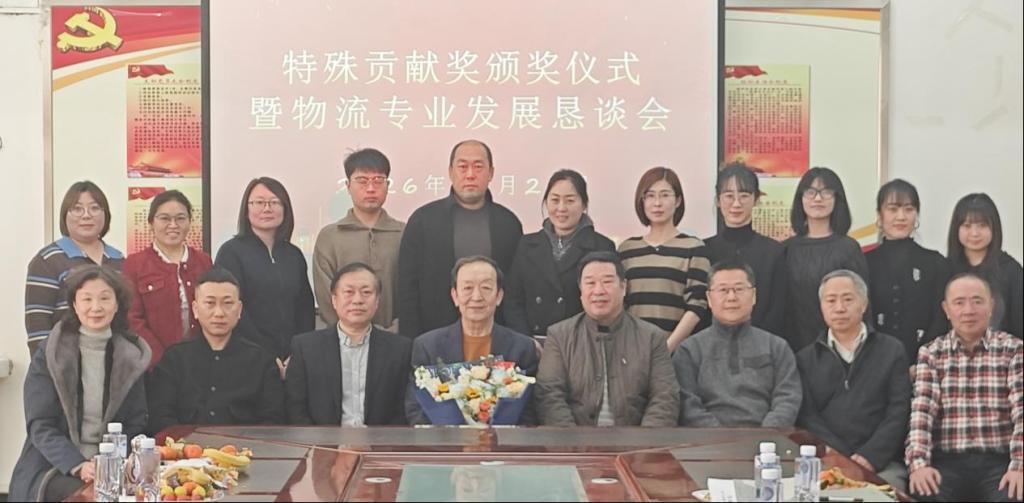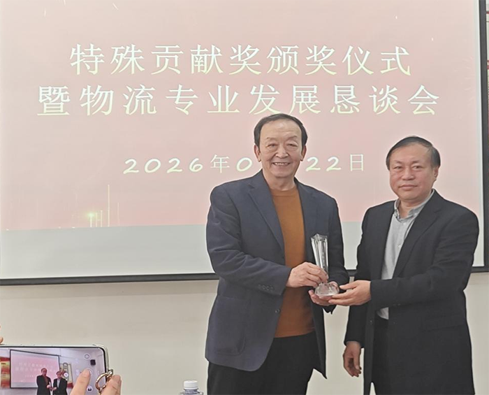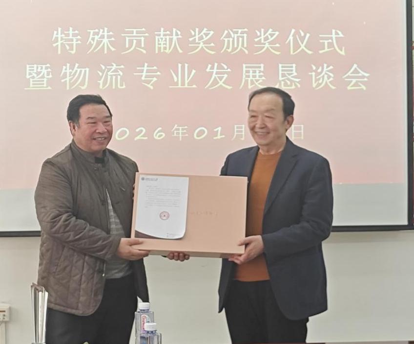 随后举行的荣休颁奖仪式将活动推向高潮。学院特别授予袁久文同志“特殊贡献奖”。在饱含深情的颁奖词中,学院高度评价了他十六年来的辛勤付出:“从企业实战中携经验归来,在教书育人岗位上将理想扎根……他以广阔视野与务实担当,推动物流专业建设攀上新台阶。”其“到位不越位、帮忙不添乱”的顾问风范,以及审时度势、胸怀大局主动提出荣休的高尚品格,更令人感佩。