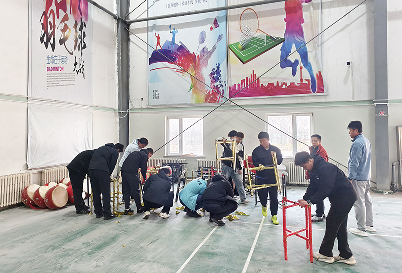 为落实党建引领校园文化建设要求,充分发挥基层党组织战斗堡垒作用和党员先锋模范作用,4月17日下午,体育党支部以“志愿服务提质效,文化传承聚合力”为主题,组织全体党员开展义务劳动,对学校百人团体操表演所用鼓具进行全面清洁、对陈旧鼓架进行修缮翻新,并邀请后勤服务中心师傅提供技术支持,切实为校园文体活动保障赋能。