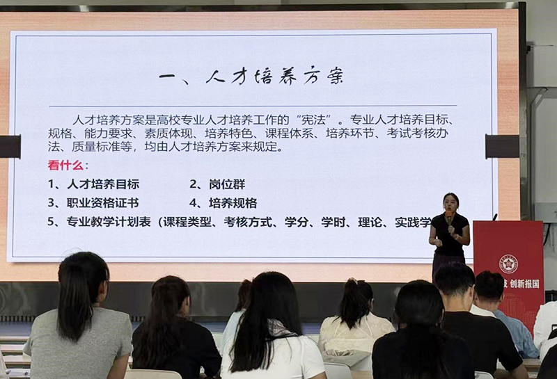 本次培训以对标评估指标、强化内涵建设为核心,重点围绕人才培养方案、课程标准、教学日历、教案设计四大模块展开,对课程标准、教学日历、教案、实训报告、试卷、成绩记录表等关键材料的书写规范都进行了详细的解读,要求课程标准、教学日历、教案等要与人才培养方案保持高度一致,并展示了一些优秀的教学存档材料。