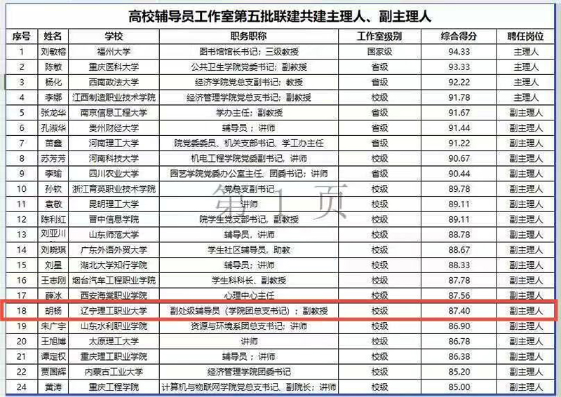 高校辅导员工作室第五批联建共建主理人、副主理人名单公示