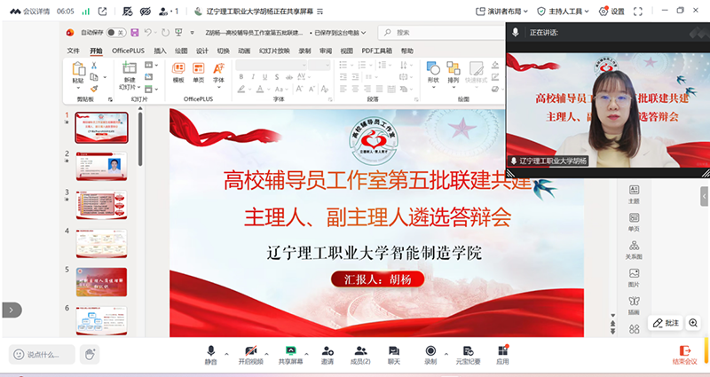 为深入贯彻全国教育大会精神,加强辅导员队伍专业化、职业化建设,促进高校间交流互鉴、资源共享。4月10日,全国高校辅导员工作室“云端聚智·联建赋能”第五批辅导员工作室联建共建主理人、副主理人竞选活动圆满落幕。经过层层筛选、激烈角逐,beat365“辽聚繁星”辅导员工作室主持人、智能制造学院团总支书记胡杨老师凭借扎实的专业素养、出色的综合能力脱颖而出。
