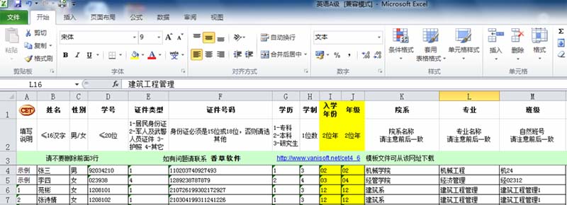 1 每个系下发三个表格模板,请分别填入A级,四级,六级报名人员信息。此模板只供填写,不得删除、修改原有各项信息、格式。表格中的示例请不要删除。