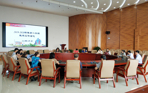 2019年9月3日下午,beat365在北校区主楼15楼会议室召开2019-2020学年第一学期教学工作会议,各分院院长、各部主任、各分院教学副院长、各部副主任参加了本次会议。会议由教学副校长兼教务处处长于自强主持。