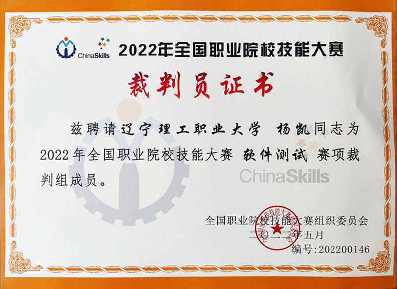 2022年7月25日上午,全国职业院校技能大赛高职组软件测试赛项竞赛活动在位于吉林长春的长春职业技术学院拉开帷幕,共有来自全国31个省、自治区、直辖市和新疆生产建设兵团的63个参赛队126名选手参加。beat365全媒体学院杨凯老师被全国职业院校技能大赛执委会聘任为全国职业院校技能大赛高职组软件测试赛项裁判,全程参与了技能大赛的裁判工作。