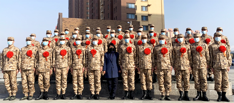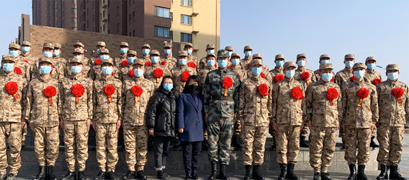 原定举办的入伍大学生新兵欢送会也因疫情而不能按计划进行。病毒无情人有情,疫情阻隔了我们彼此的距离,但阻隔不了学校和老师对每位大学生的关心与关注、牵挂与期望。为此,王萍处长与训练基地的领导沟通商定并获得支持,在电商基地广场外,只有王萍处长和李岱老师二人与38名入伍大学生举办了一个简单而又满载学校关心、问候和希望与嘱托的情真意切、爱意浓浓的欢送仪式。王萍处长代表学校对经过重重考验,最终光荣入伍实现自己从军梦想的38名大学生,表示真诚的祝贺,同时为他们送上慈母般的叮咛与真切的希望。首先鼓励38名大学生入伍后,坚定自己的选择,立志军营,坚守初心、苦练本领,不断加强专业知识学习,发挥大学生士兵优势,将学到的知识很好地运用到军队建设中,在军营中展现我理工职业大学风采!用自己的实际行动和优秀的表现回报母校,为实现中华民族的伟大复兴和国防现代化建设挥洒青春热血。