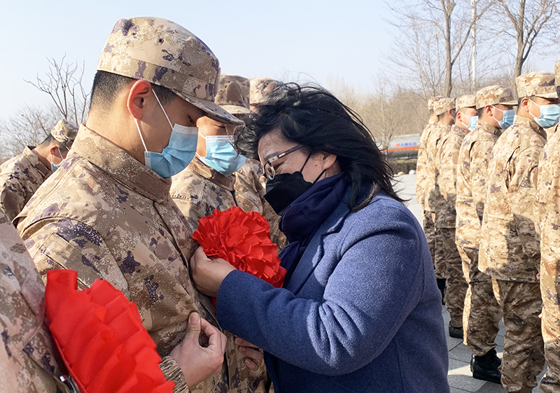 2022年3月15日下午3点,学校武装部副部长、征兵工作站站长、就业指导处处长王萍与征兵工作站李岱老师到役前训练集中营滨海新区电商基地慰问送别38名即将走进军营的大学生新兵。今年在疫情防控形势较为复杂和紧张的情况下,学校顺利完成了2022年春季征兵工作,圆满完成春季征兵任务。