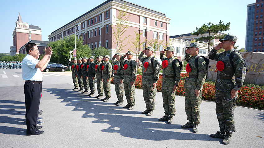 王萍处长在总结中说到:希望入伍学生在以后的日子里,万事顺遂,继续秉承“勤学苦练、学思结合、知行统一”的学风,在军营不断完善自我、施展才华;欢送仪式是对12名入伍毕业生的激励,同时也是对2023级新同学的感召,希望2023级新生以此作为“开学征兵宣传教育的第一课”,从中受到感染和教育的同时,燃起参军报国的热情,接过学长的接力棒,将来也能走上保家卫国、建功军营的成长之路。