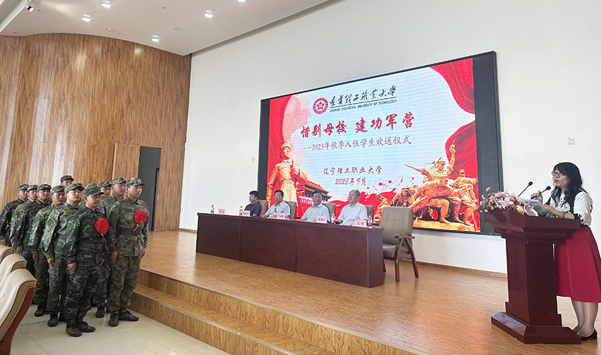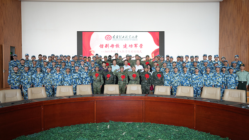 携笔从戎彰显青春本色,建功军营实现强国梦想。以“惜别母校,建功军营”为主题的2023年秋季入伍学生欢送仪式于9月14日下午1点30分在北校区主楼15楼会议室举行。莅临本次仪式的领导有主管教学工作副校长于自强,主管学生工作副校长时力华,武装部部长、财经学院院长杨英标,学生处处长朱磊,武装部副部长、就业指导处处长王萍。本次会议由王萍处长主持。12名入伍毕业生及70余名2023级新生代表参加了欢送仪式。
