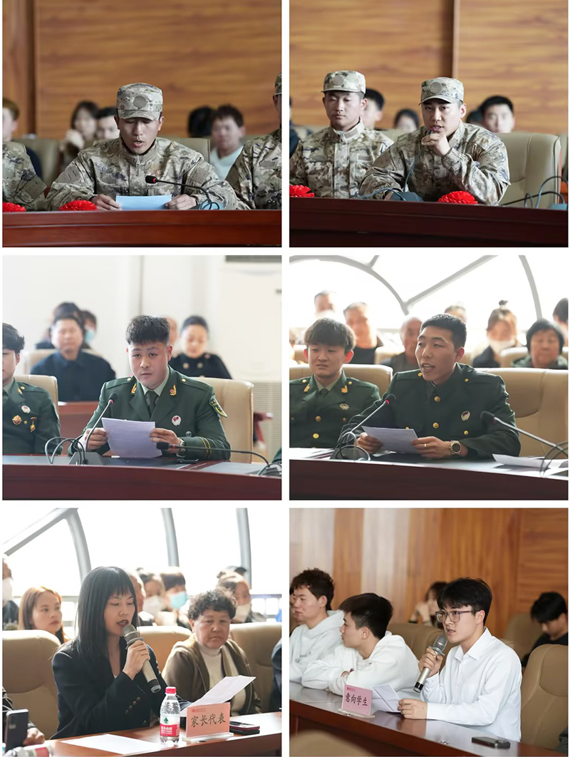 座谈会在温暖、轻松和愉快的氛围中展开。入伍学生代表从入伍初心、感恩母校与家长、报效祖国、入伍后规划等方面发表感言;退役复学学生代表从入伍经历、重返校园后的心理调适、发挥模范榜样作用等方面发表感言;以上交流发言一方面促使入伍学生初步了解军营生活,另一方面激发了在校意向报名参军学生对军营的憧憬和参军的热情。家长代表表达了对孩子入伍的极大光荣感与自豪感,对学校教育及征兵工作的极大肯定,对学生的期望、牵挂与叮咛。在校意向报名参军学生代表表达了对入伍的渴望,也从自身分析了目前存在的差距,找到了要努力和奋斗的方向。
