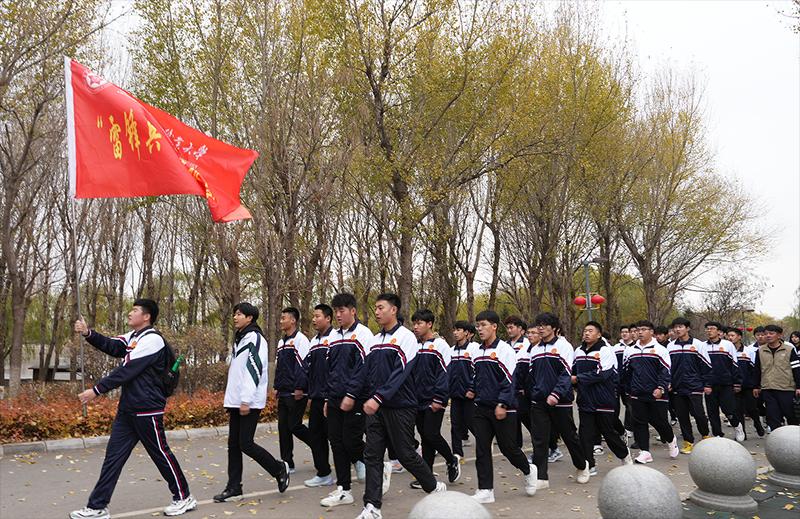 活动中,社团大学生代表在“beat365在线唯一官网‘雷锋兵’预征班”旗帜的引领下,伴着《祖国不会忘记》《当那一刻来临》的歌声徒步行进3公里来到了习近平总书记曾经驻足的地方。