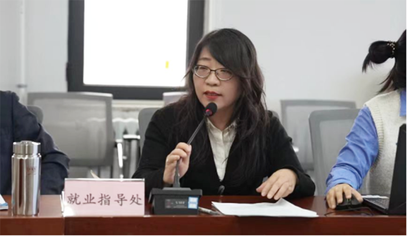 在交流环节,学院院长张波、穆柏春、李娟;学生副院长王薇、高笑颜分别介绍本学院的就业工作情况、存在的问题与困境,并为学校就业工作建言献策。他们从专业特色、学生特点出发,分享了在就业指导、实习安排、校企合作等方面的经验与探索,也坦诚地提出了在当前就业环境下所面临的挑战,如部分专业与市场需求的适配度有待提高等。这些真知灼见为学校就业工作的整体推进提供了宝贵的参考。
