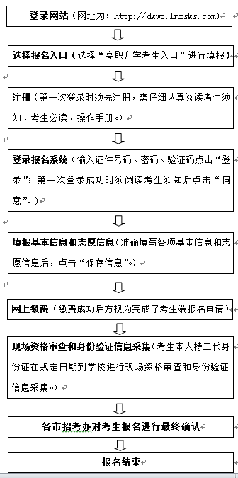 1、符合报名条件的考生在完成网上填报基本信息进行网上支付缴费后,到辅导员处填写《辽宁理工职业学院2017年高等职业教育对口升学报名登记表》(见附件一)。在辅导员带领下,考生持身份证、学生证原件及复印件两份(应届生);毕业证书原件及复印件两份(往届生)到beat365南校区综合楼1205室进行资格审查和身份信息验证。