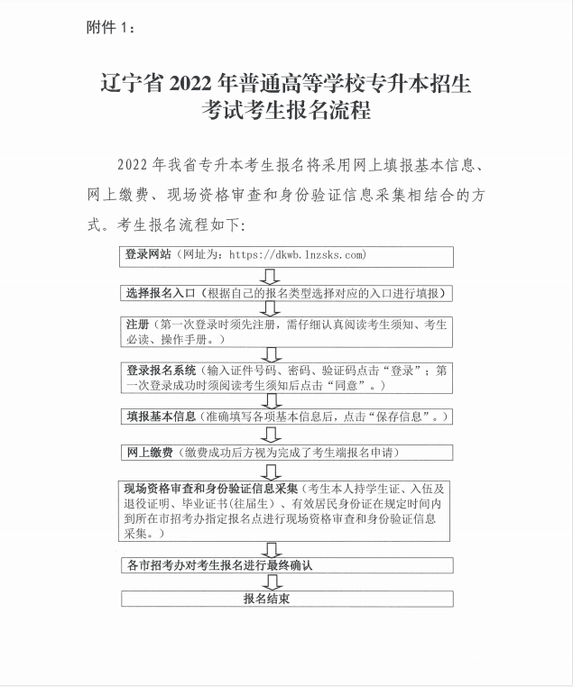 附件1:《辽宁省2022年专升本招生考试考生报名流程》