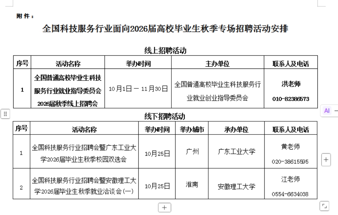 ——关于举办全国科技服务行业面向2026届高校毕业生秋季招聘活动