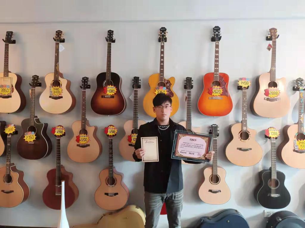 就这样以老带新,教学不打折扣,现在他的琴行生意兴隆,学员能达到30—40人,带给他的不仅有梦想,还有对美好生活的无限热爱!在当地,他在艺术教育圈内比较有名气,经常能接到一些当地或者省内的一些商演,也有一些live的演出,他也会经常组织演出,每年能至少举办2次,给学生提供表演的舞台。他热爱教育事业,对学生认真负责,他把大学里老师教给他的“知生、爱生”的教育观念,运用到自己的事业中。虽然在创业的路上遇到了很多困难,好在他的大学教会了他直面困难,从容面对。他希望通过他不断学习积累,让琴行越来越好,给来学吉他的学员更好的教学体验,让每一位学员都能体会到学吉他的快乐。