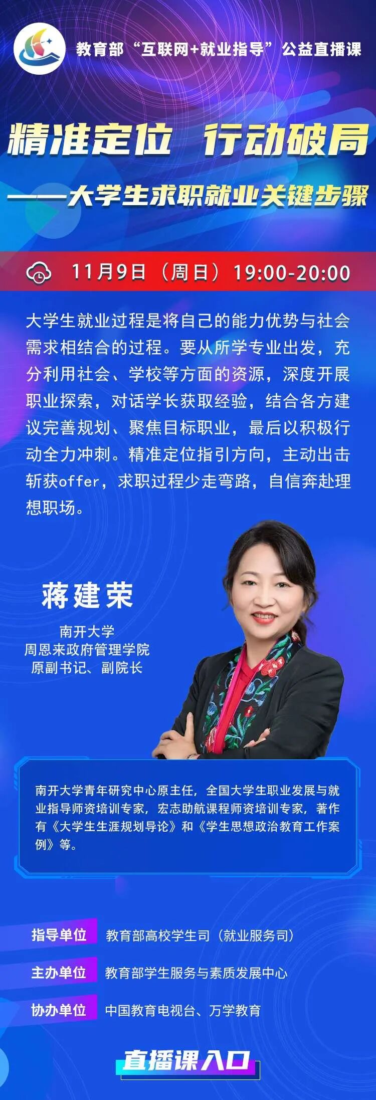 请各学院积极宣传和推送,可组织全体毕业生和在校生观看,以提升求职能力,助力顺利就业。具体介绍和直播入口如下。各学院主管学生副院长收到请回复。
