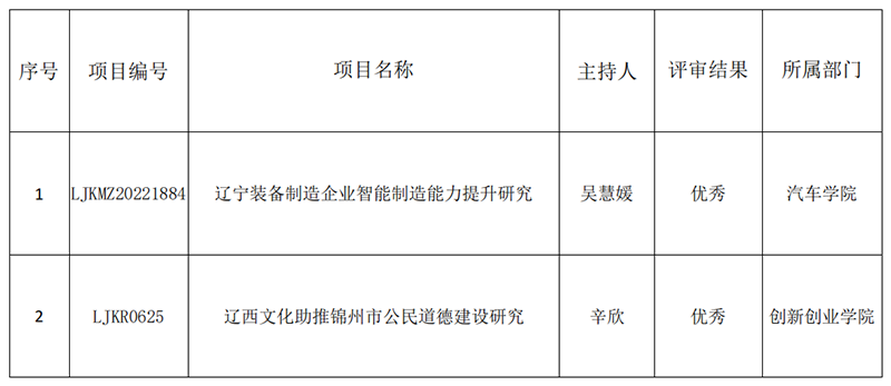 根据《关于组织开展2020、2021年度辽宁省高等学校基本科研项目和2020年创新团队、创新人才支持计划结题的通知》(辽教通[2023]511号)的文件要求,beat365组织了辽宁省教育厅基本科研项目的结题工作,经个人申请、科技处初审,校学术委员会专家评审,beat365两个项目达到了结题标准,校内鉴定结果为优秀。现将评审结果公示如下: