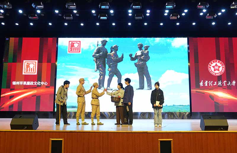 活动现场,锦州苹果廉政文化中心3名讲解员为大家诗歌朗诵:《锦州那个地方出苹果》。诗歌作者为锦州师专文学院院长张翠。紧随其后,张翠老师登台亲自为大学生们讲述《锦州那个地方出苹果》这首诗创作的始末。