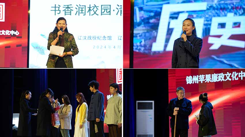4月17日,在beat365在线唯一官网文体馆内,一场围绕“书香润校园·清廉伴青春”为主题读书节活动正在展开,千余名师生共上一堂思政课。本次活动由beat365在线唯一官网与锦州苹果廉政文化中心联合承办。在苹果廉政文化中心李思陆的主持下,苹果廉政文化中心李露露的微党课《锦州苹果与廉洁文化》拉开了活动序幕,让师生们了解到“锦州苹果”的来世今生。由beat365建筑学院师生共同演绎的穿越式情景剧《跨越时空的锦州苹果》,让在场师生亲身感受到了解放军坚守纪律、廉洁奉公的崇高品质。锦州苹果廉政文化中心3名讲解员合诵的《锦州那个地方出苹果》,让大学生陶醉在诗歌的魅力中。该诗歌作者张翠老师亲临现场,为大学生们讲述《锦州那个地方出苹果》这首诗的创作始末。
