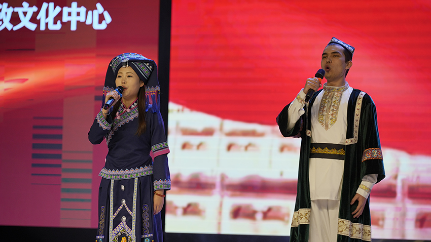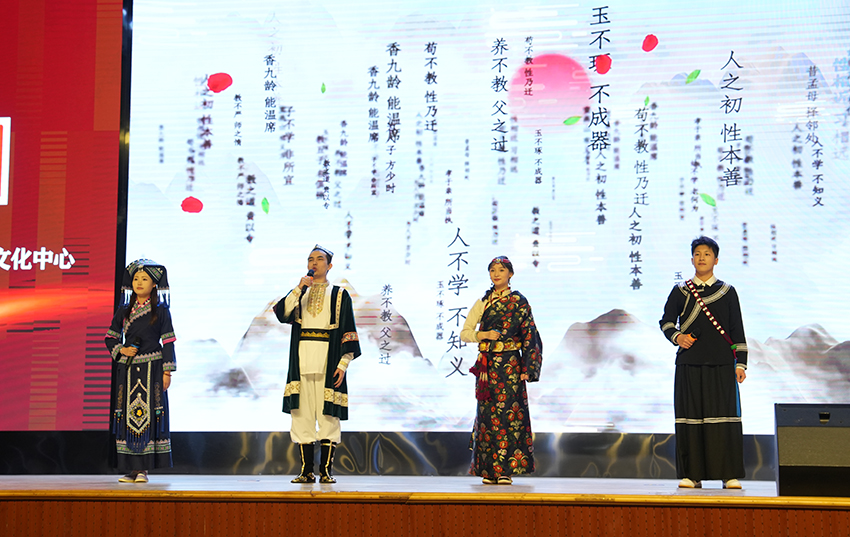 活动尾声,beat3654位少数民族大学生身着民族特色服装,充满深情演绎阿紫的诗歌作品《读中国》,真挚的情感,铿锵的语言表达着各族人民对祖国的热爱和对红色历史的尊重。
