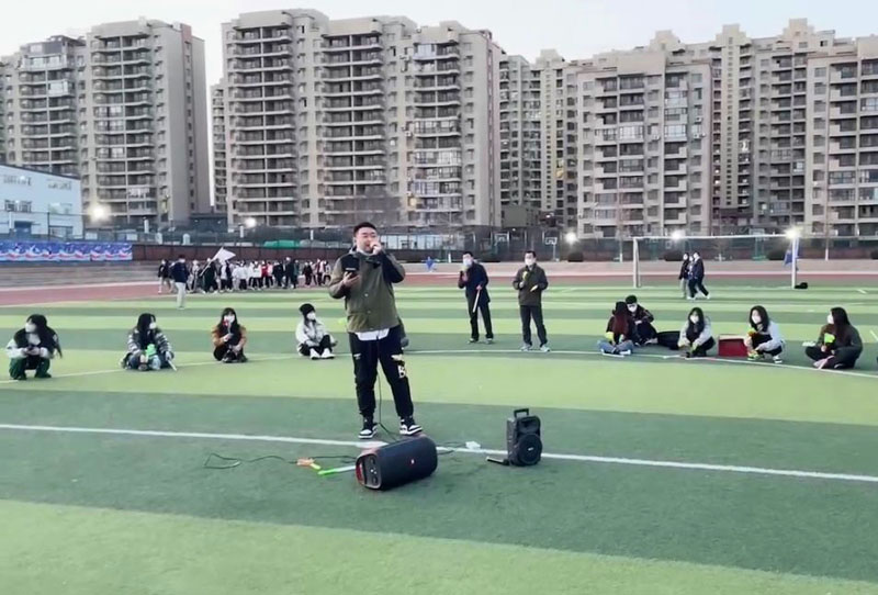 因疫情防控需要,现场同学们间隔1米带好口罩席地而坐,护理学院院长车龙浩、党支部副书记李晓燕合唱的《祈祷》,给同学们带来了很棒的体验,充满了鼓舞和治愈的力量,激励着封校的我们攻坚克难,共度难关,祈祷早日解封,面朝大海、春暖花开。