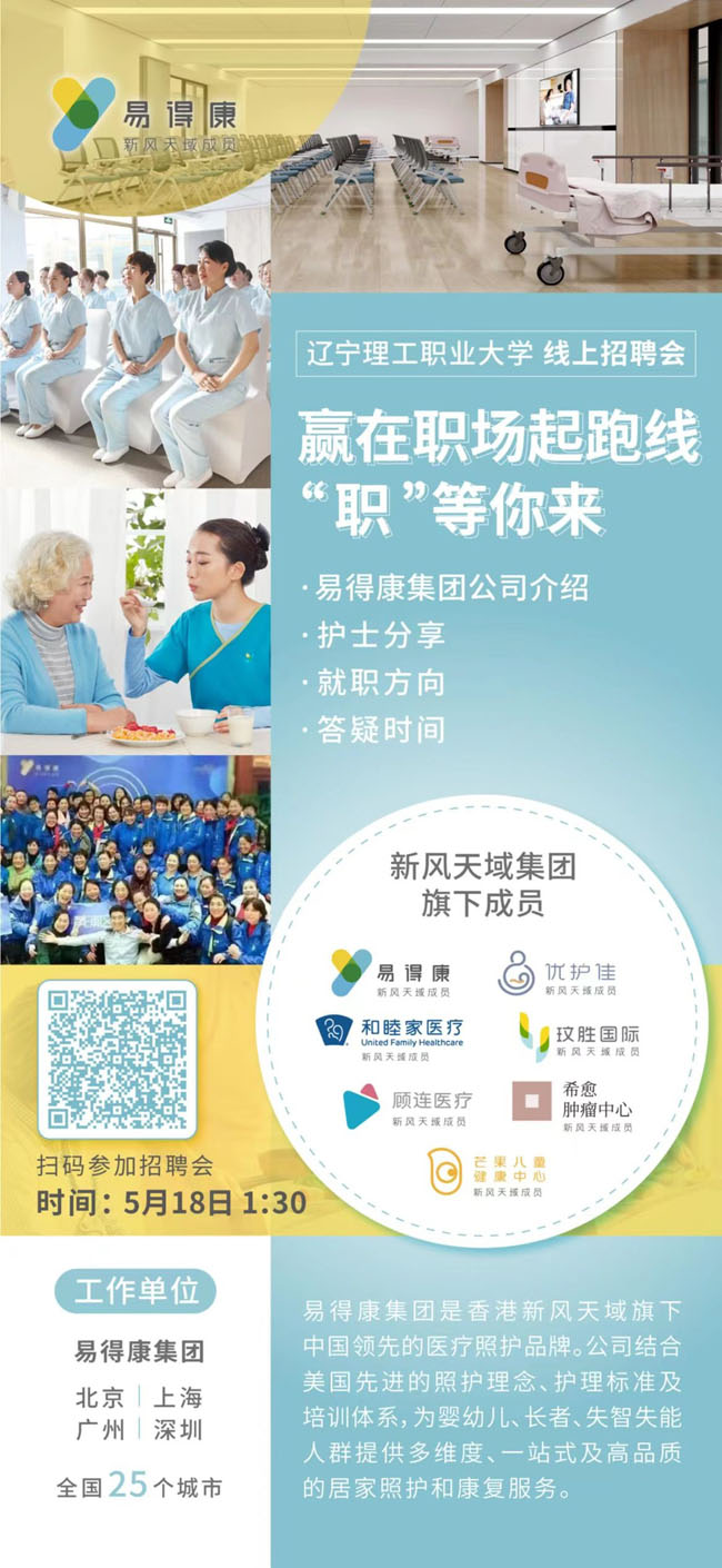 为进一步帮助2022届毕业生实现更高质量就业,护理学院领导高度重视,通过各种形式积极访企拓岗,千方百计为学生提供更多就业岗位。5月18日下午13:30,通过腾讯会议,学院召开易得康集团专场线上招聘会。