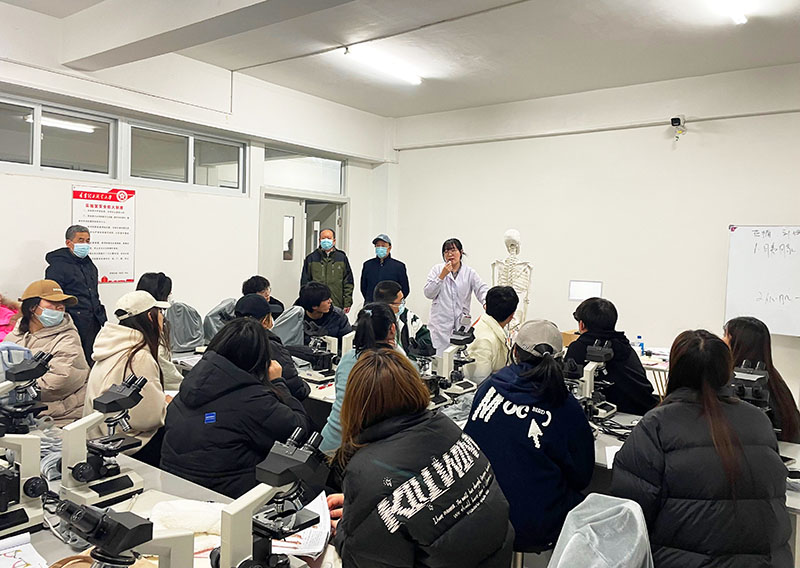 孟校长及各位领导首先来到护理学院的实训课堂,了解学生的学习状态。走进两个教室分别听了近五分钟的课程,看到上了一天课的师生仍然精神饱满,很是欣慰。随后,又来到办公室看望了没课的教师,在了解到护理学院实训课教师24日便全部驻校,为在本周完成实训课教学,经常授课到晚上八点半,给予了充分肯定,并嘱咐老师要劳逸结合。