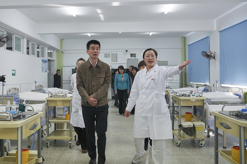 11月12日上午,锦州市卫生健康委员会党组书记、主任胡占升带领锦州市卫生健康系统相关领导一行来beat365进行调研指导,董事长文秋、校长王忠诚陪同调研。