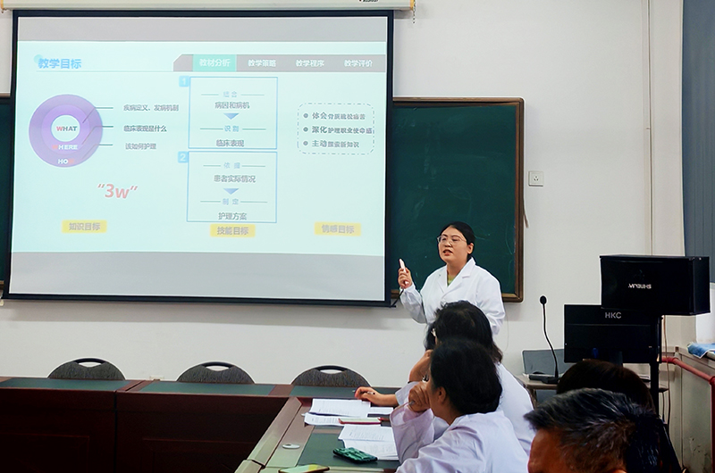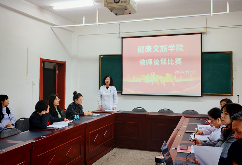 为扎实推进学校迎评促建工作,落实学校《关于开展课堂教学看课周活动》,提高青年教师教学能力和水平,造就一支高素质的教师队伍,达到以“说”促“教”的目的,健康文旅学院于11月13日在综合楼十楼会议室举办了青年教师说课比赛。本次比赛由院督导组组长刘沫教授主持,院督导组成员和博士教授等共7名老师组成评审,对各位参赛教师现场说课、PPT设计等进行评审。全院教师到场观摩学习。