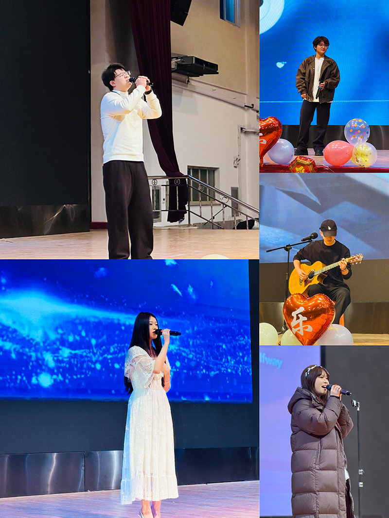 随后,晚会进入到了精彩的表演环节。师雯同学用她那宛如天籁的嗓音深情演绎了经典之作《天若有情》,歌声如潺潺流水,滋润心田,仿佛将观众带入了一个如梦如幻的感情世界。紧接着,刘佳虹同学带来的《喜洋洋》以其欢快的旋律和清脆悦耳的歌声,为观众们驱散了冬日的寒意,带来了满心的喜悦。