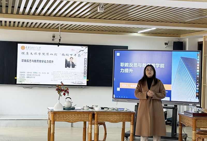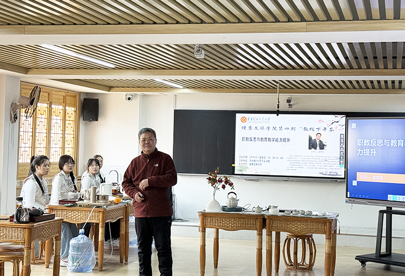 为提升青年教师教育教学能力,深入学习职业教育理念。健康文旅学院于3月14日下午1点30分在茶艺实训室开展第四期“教授下午茶”教研活动,主题为“职教反思与教育教学能力提升”。本期活动邀请金彦龙教授与青年教师们展开一场关于“职业教育 ”的教学交流。活动由健康文旅学院副院长马红主持。