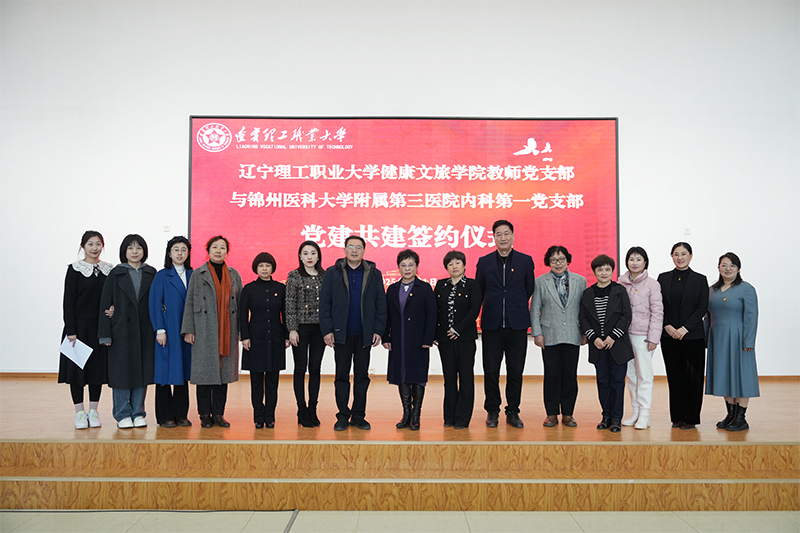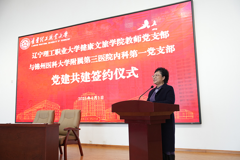 签约仪式由beat365在线唯一官网健康文旅学院党总支书记兼教师党支部书记李娟同志主持。出席签约仪式的领导有锦州医科大学附属第三医院党委副书记李一同志、beat365在线唯一官网党委副书记蔡红武同志,以及双方党委组织部、宣传部、统战部等相关部门的负责人和代表。