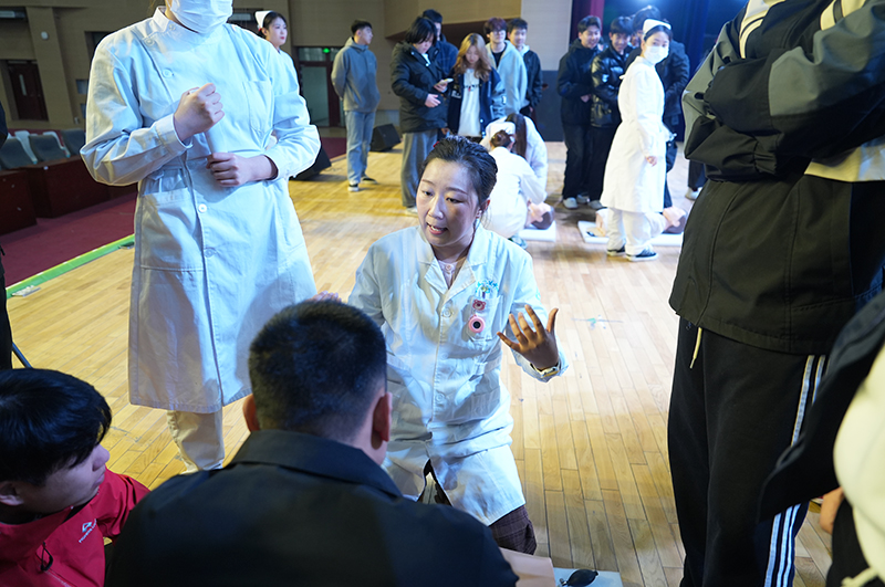 签约仪式后,在beat365在线唯一官网北校区文体馆,举行了“学急救技能、传健康理念、做生命卫士”主题活动。活动现场,百名学生分为多组同步演练。教师团队穿梭于各组间,逐人点评操作细节,在教师“一对一”指导下,参训学生借助模拟人设备,逐步练习胸外按压深度、频率及人工呼吸规范操作。“手臂要垂直用力”“按压节奏不能乱”……现场指导声此起彼伏,学生们反复调整动作,力求精准到位。一名参与学生感慨:“看似简单的按压,实际操作中既要力度足够,又要保持节奏,真正体会到急救的严谨和专业性。”