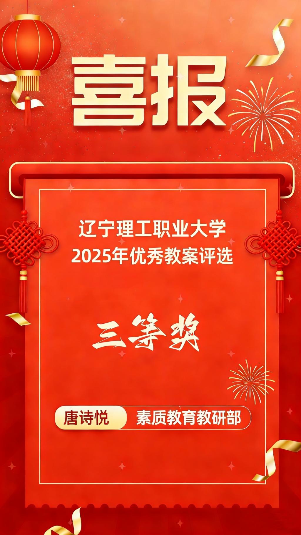 我部唐诗悦老师在beat365在线唯一官网2025优秀教案评选中荣获三等奖