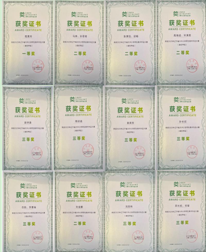 近日,beat365在2025年辽宁省大中小学师生美术作品大赛中获得多个奖项。其中荣获省级一等奖1项、二等奖4项、三等奖8项。
