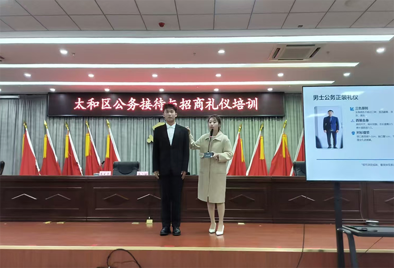 培训现场,马小田老师紧密结合自身丰富的教学实践经验,精准对接太和区招商引资工作实际需求,围绕招商接待全流程展开系统讲解。课程从仪容仪表、仪态举止等基础形象礼仪入手,层层深入拆解招商接待各环节礼仪规范,细致分享高效沟通技巧与突发情况应急处理方法,讲解内容深入浅出、兼具指导性与实用性。