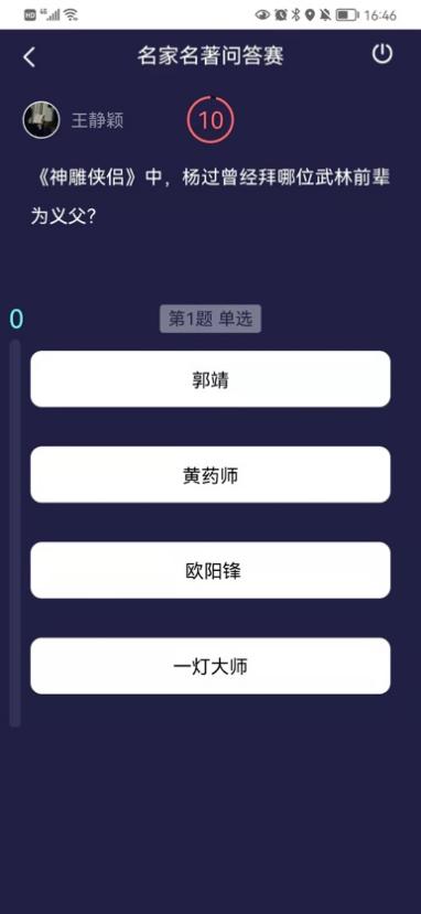 名家名著知识挑战学生端参赛界面图
