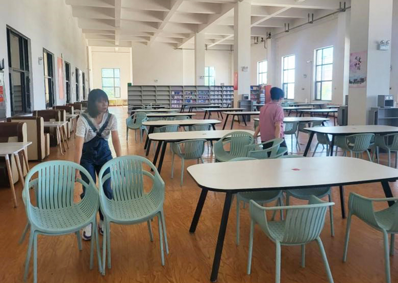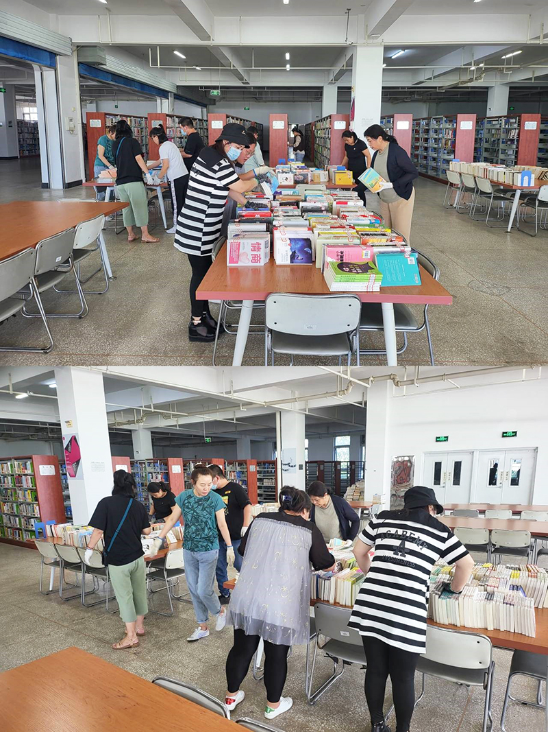 近日,图书馆全员集合,对南北两馆进行了为期两天的整体清扫,并为北馆搬运安置了新的阅读椅;对疫情封校期间采编好的一万余册新书进行整理、分类并上架。