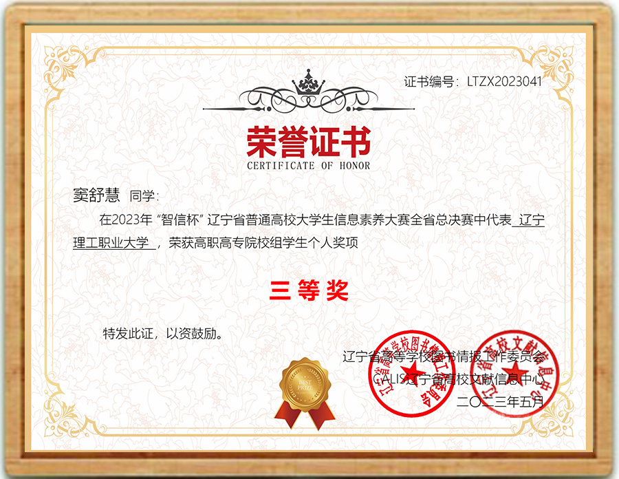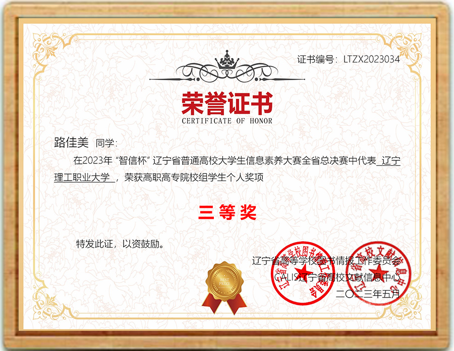 | 2023年“智信杯”辽宁省普通高校大学生信息素养大赛中荣获优秀奖 |