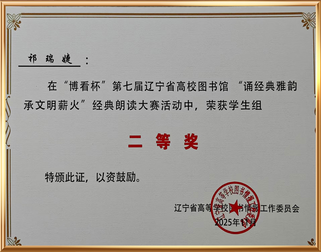 “博看杯”第七届辽宁省高校图书馆“诵经典雅韵 承文明薪火”经典朗读活动中荣获二等奖 |