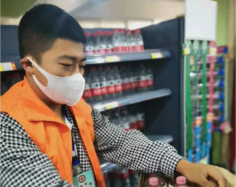 机电学院入党积极分子志愿者团队以“志在心中,愿在行动”为口号,他们积极配合学校超市上货、运货等工作。在封校管理初期,他们便意识到学校超市大量缺人,想了想应该怎样缓解校园的压力。他们下定决心当一名神圣的志愿者。志愿服务时的初心是不求回报的。为同学们服务,他们说干就干,筹备人员、分组,整装待发,随时准备冲向工作岗位。