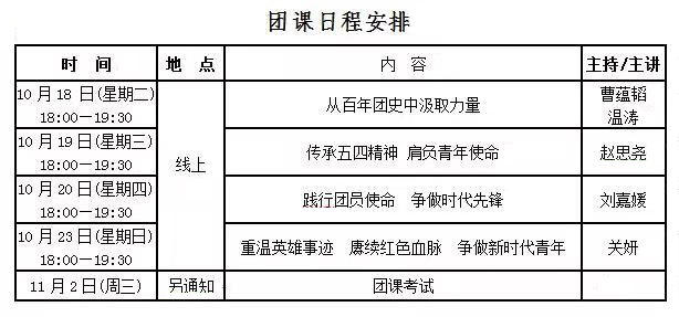 通过团课培训,旨在让同学们对共青团有了更为全面的认识,坚定理想信念、厚植爱国情怀、更加刻苦训练、努力学习,严于律己,积极上进,努力争做一名合格的共青团员!