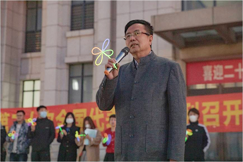 热烈庆祝中国共产党第二十次全国代表大会胜利召开,激发新时代大学生的青春活力和朝气蓬勃,培养学生德智体美劳全面发展,由校团委主办,践行学社承办的“炫彩荧光夜跑 耀动青春校园”主题活动于10月19日17:30时,在北校区主楼前广场举行。副校长时力华,马克思主义学院院长张觉力、就业指导处处长王萍、学生处处长张丽娜、招生办公室主任崔莉芳、团委书记魏腊月,以及各学院学生工作副院长和辅导员老师来到了活动现场。