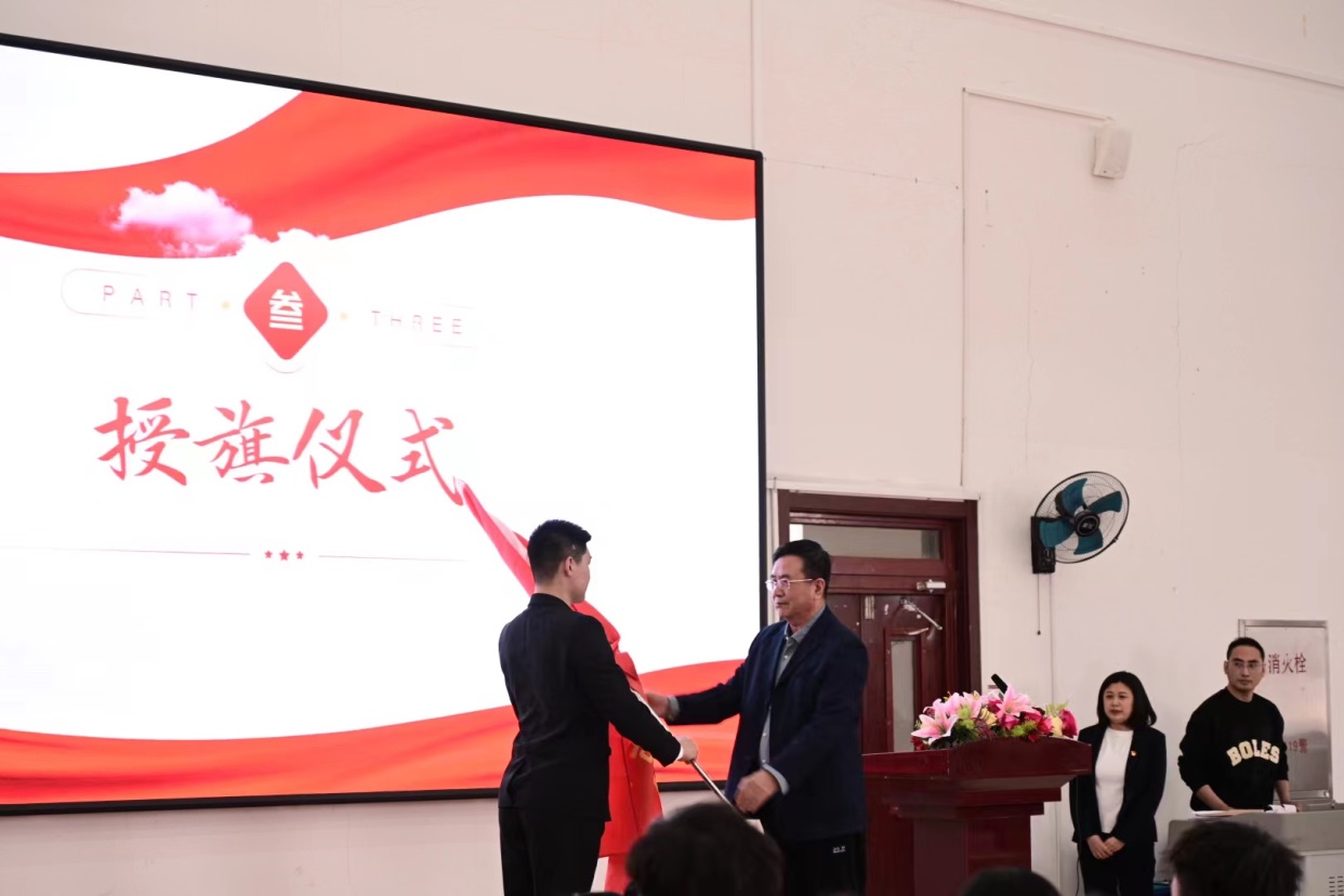 大会第三项,由副校长时力华为第九期“青马工程”培训班授旗