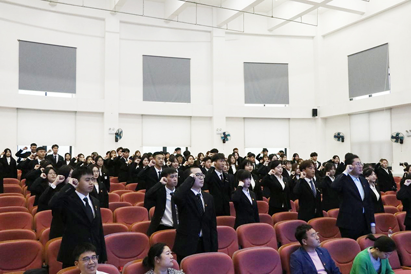 大会第五项:宣誓。由团委老师曹蕴韬领誓,在场的同学们共同举起右手握拳,庄严宣誓。同学们右手紧握的是作为同学榜样的原则和坚持;铮铮的誓言中是作为学生干部的责任与担当。