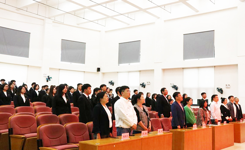 大会第一项:奏唱国歌。大会在雄壮的国歌声中隆重开幕,在场师生全体起立共唱国歌。